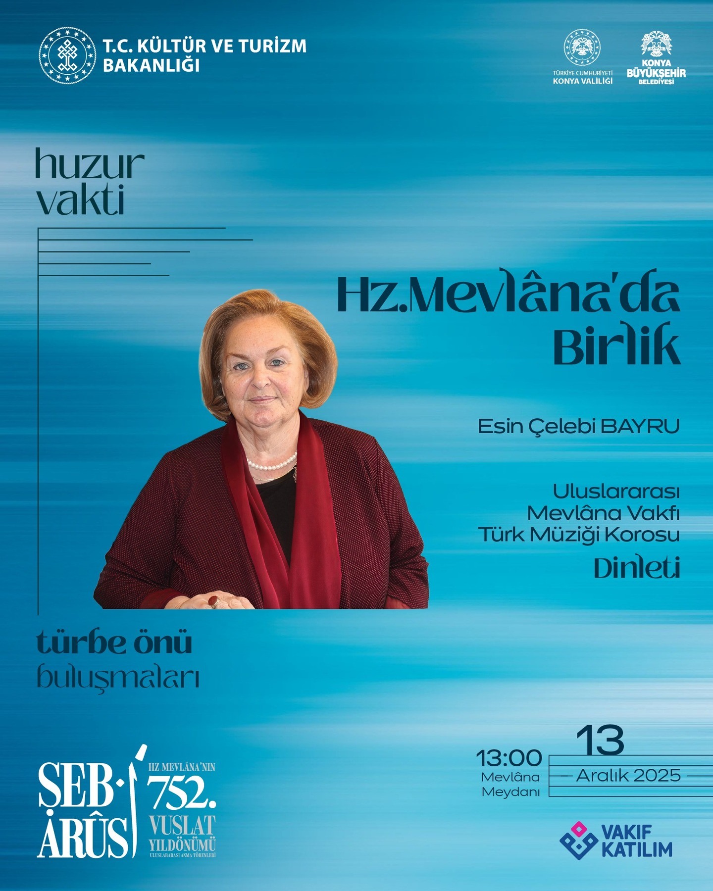 Mevlâna’nın 752. Vuslat Yıldönümü Uluslararası Anma Törenlerinde, Konya Türk Tasavvuf Müziği Topluluğu tarafından Sultan III. Selim’in Sûzidilâra Mevlevî Âyin-i Şerîfi icrâ edilecektir.
