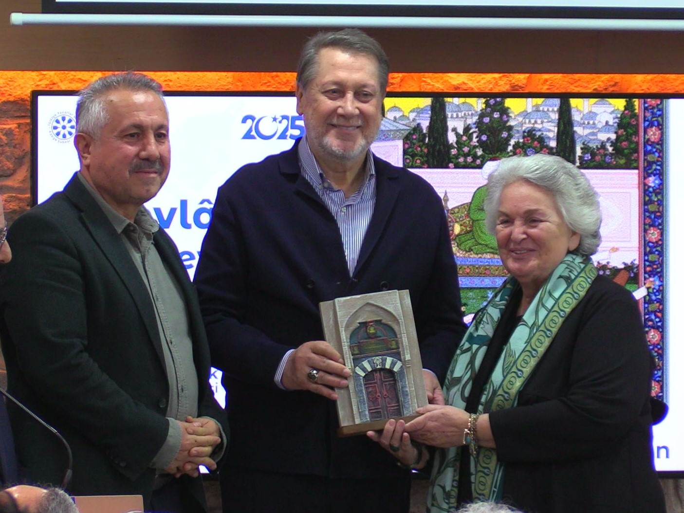 TYB Konya Şubesinde, Hazreti Mevlânâ’yı Anma İhtifalleri’ne 45 yıldır kesintisiz katılan ve Hz. Mevlânâ düşüncesinin Konya ile birlikte tanınmasına önemli katkılar sunan sanatçı Ahmet Özhan’a, Mevlâna Türbesi Gümüş Kapısı özel minyatürü takdim edildi.