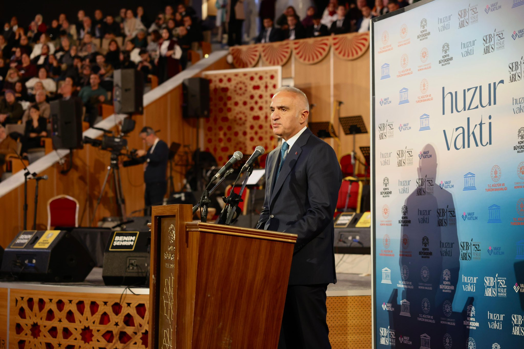 Bakan Ersoy, Hazreti Mevlânâ’nın eserlerinin esas kaynağının Kur’an-ı Kerim ve Peygamber sevgisi olduğuna vurgu yaptı. Mevlâna’nın kendisini “Kur’an’ın bendesiyim, Hz. Muhammed’in yolunun toprağıyım” sözleriyle ifade ettiğine dikkat çeken Ersoy, onun eserlerinin derin anlamlar içerdiğini ve bu eserlerin insanlar üzerinde kalıcı bir etki bıraktığını kaydetti. Bu yıl “Huzur Vakti” temasıyla düzenlenen Şeb-i Arûs etkinlikleri çerçevesinde Kur’an-ı Kerim tilavetleri, ilmi sohbetler, sema mukabeleleri ve tasavvuf müziği dinletileri yer aldı. Aynı zamanda Konya’da gerçekleştirilen Mistik Müzik Festivali’nin, Mevlâna’nın evrensel öğretisini yayma açısından büyük bir rol üstlendiğini söyledi. Bu tür etkinliklerin, Mevlâna’nın getirdiği sevgi ve hoşgörü mesajının daha geniş kitlelere ulaşmasına katkıda bulunduğuna inandığını belirtti.