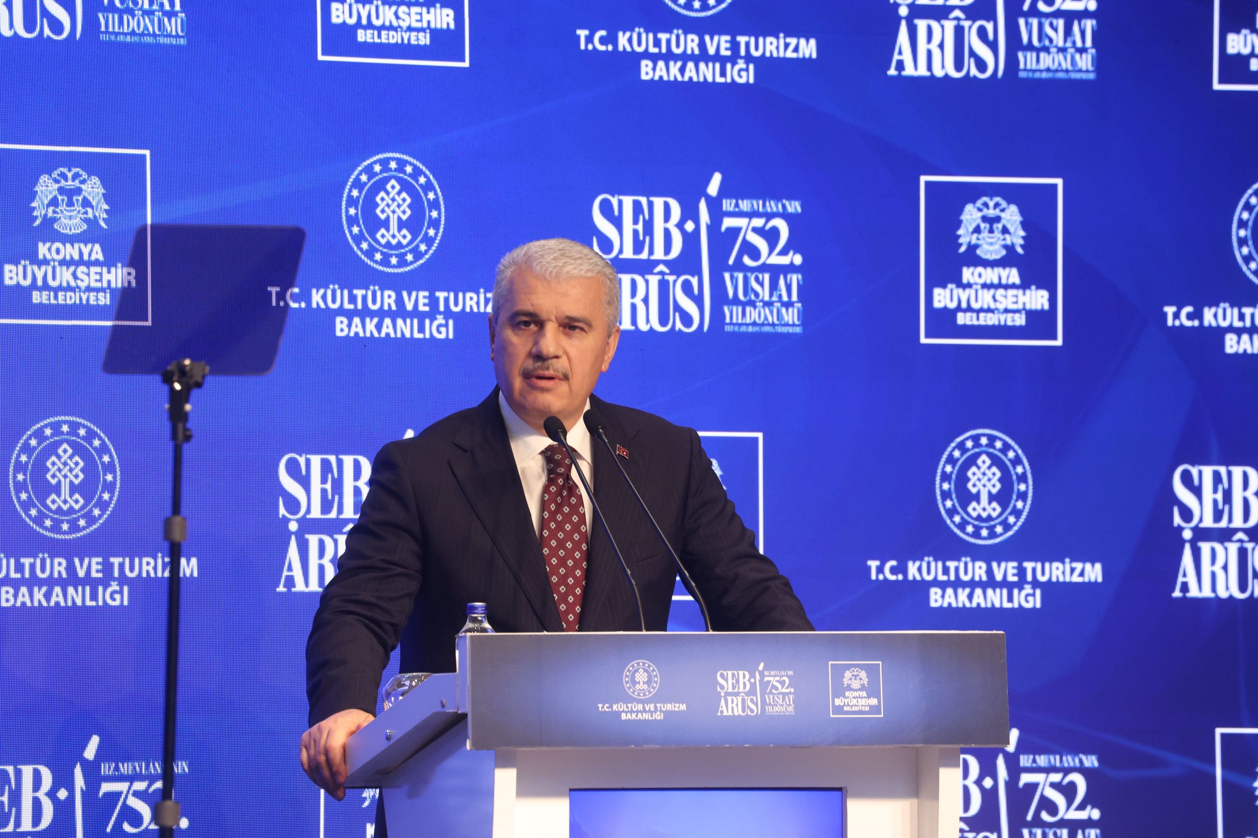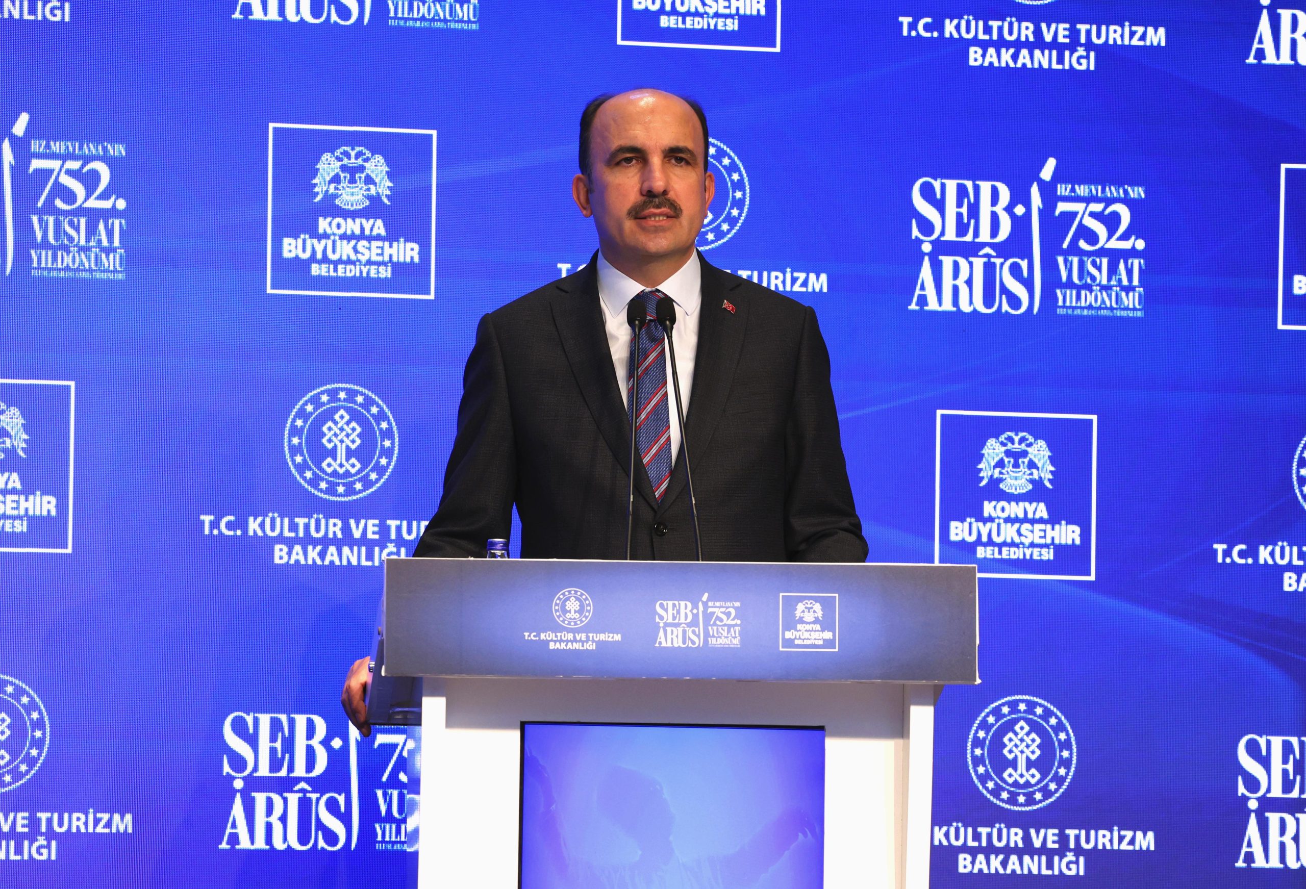 Kültür ve Turizm Bakanlığı olarak, Konya Büyükşehir Belediyesi ile birlikte bu yıl da hikmetleri ve düşünceleri ışığında Hazret-i Mevlânâ’yı 11 gün sürecek meşkler, paneller, sergiler, söyleşiler, atölye çalışmaları, konserler, Sema Mukabelesi ve farklı etkinliklerle anmakla kalmayıp anlamaya da çalışacaklarını söyleyen Bakan Ersoy, “Mevlânâ’nın yolundan gidenlerin bir hayat anlayışına dönüştürdüğü ‘Mevlevîlik’ kültürünün bizlere armağan ettiği değerler arasında; kendine has âdâb ve erkânı, özel mûsikîsi ve edebî külliyâtı ile ‘Semâ’ geleneği, hiç şüphesiz benzersiz bir yere sahiptir. Türk kültürünü oluşturan ve besleyen birçok unsur gibi, bu geleneğin ve mirasın korunması da bakanlığımızın başlıca sorumluluğu arasındadır” ifadelerine yer verdi.