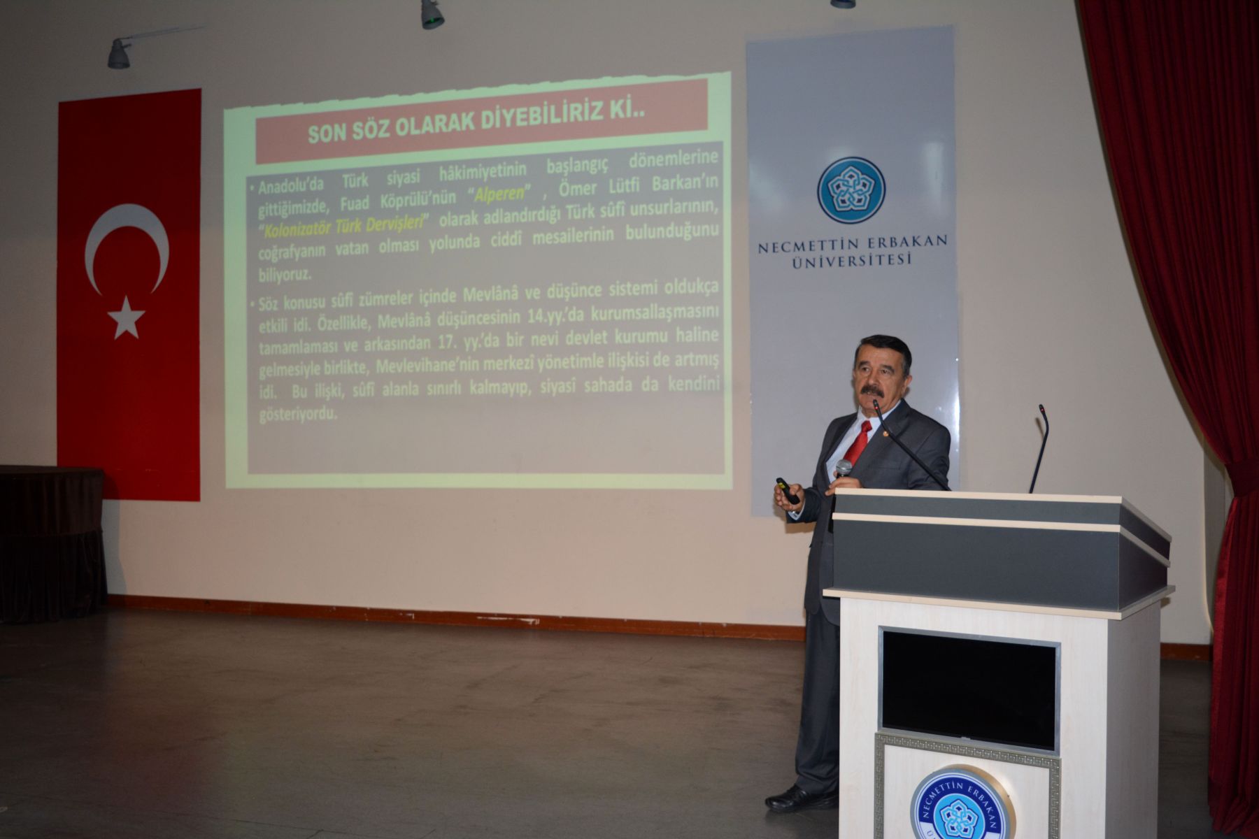 Necmettin Erbakan Üniversitesi Ahmet Keleşoğlu Eği̇ti̇m Fakültesi̇ tarafından düzenlenen “Balkan Savaşlarında Mevlevihaneler” konulu konferans Prof. Dr. Erol Güngör konferans salonunda gerçekleşti.