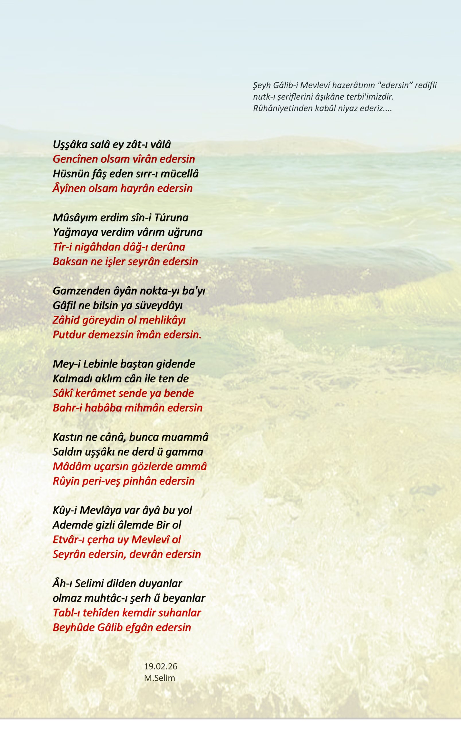 Şeyh Gâlib-i Mevleví hazerâtının “edersin” redifli