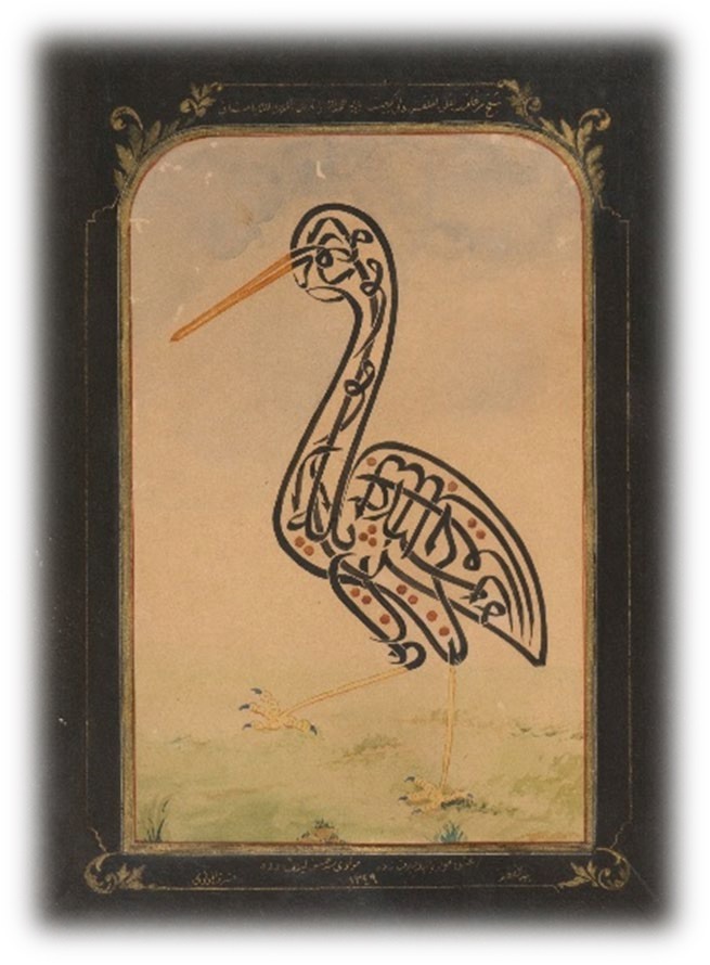 Resim 9 – Hasan Leylek Dede’nin herkes tarafından bilinen leylek şeklinde yazdığı sülüs yazı