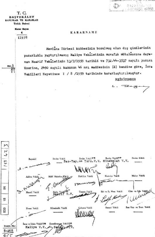 G. 6: 1959 yılında Kubbe-i Hadrâ çinilerinin pazarlıkla yaptırılması kararı (Devlet Arşivleri Başkanlığı Osmanlı Arşivi, Belge No: 030_18_01_02_153_42_3)