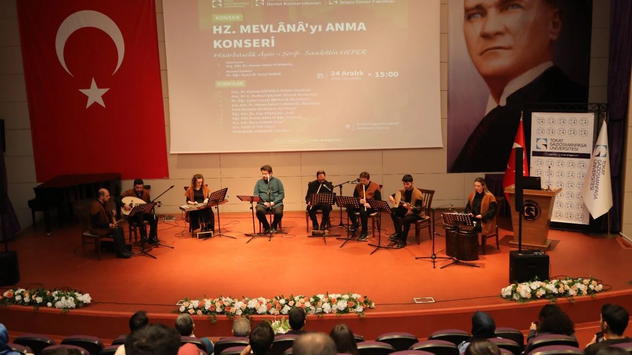 Tokat Gaziosmanpaşa Üniversitesi (TOGÜ) bünyesindeki Devlet Konservatuvarı ile İslami İlimler Fakültesi, Hz. Mevlânâ Celaleddin-i Rûmî’yi anmak için özel bir etkinliğe imza attı. İki farklı disiplinini buluşturan “Hz. Mevlânâ’yı Anma Konseri”, 24 Aralık Çarşamba günü Şehit Ömer Halisdemir Konferans Salonu’nda sanatseverlerle buluştu.